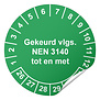 De keuringssticker gekeurd volgens NEN 3140 gebruik je bij het periodiek keuren van elektrische apparatuur.