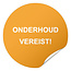 De onderhoud vereist sticker geeft direct duidelijkheid. Dit komt voornamelijk door de oranje kleur in combinatie met de duidelijke tekst 'onderhoud vereist'. Dit zal betekenen dat er onderhoud gepleegd moet worden. Lees meer.